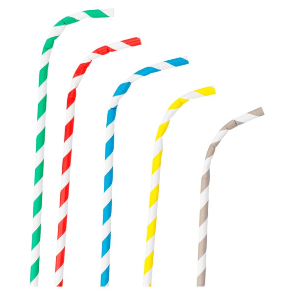 Cannucce flessibili inguainate. Le cannucce di carta sono la nuova alternativa ecofriendly alle tradizionali cannucce di plastica essendo fabbricate con materiali biodegradabili resistenti ai liquidi freddi o caldi. In bianco, nero, naturale o a colori. Sono disponibili anche in versione imbustata.Vendita a confezione da 250pz.