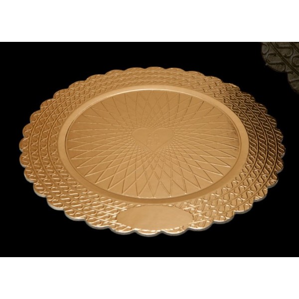 Vassoi in cartone plastificati con film oro, ottimi per l'asporto di dolci e paste.Idoneo al contatto con alimenti.Vendita a confezione da 10kg.